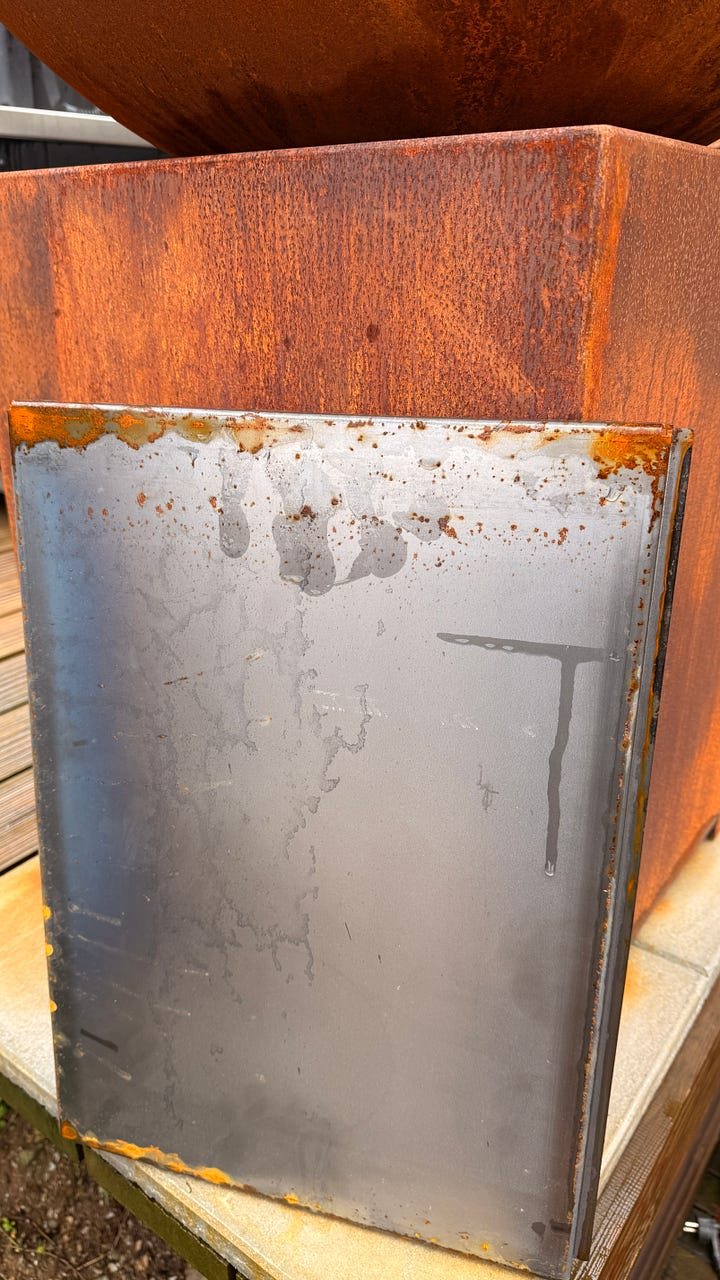 Le brasero est en acier corten, ce qui est excellent en termes de durabilité et d’esthétique. Mais Grillrost est allé plus loin : le tiroir à cendres est en inox.