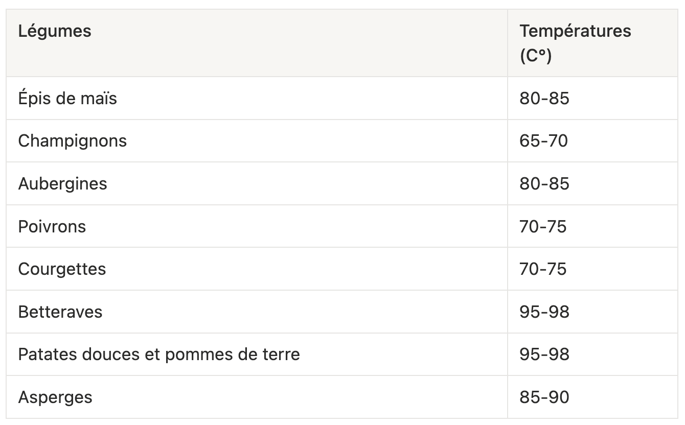 👉 Repères thermiques de cuisson des légumes